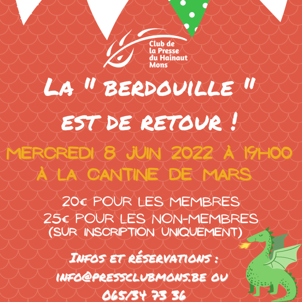 Elle revient, pour votre et notre plus grand plaisir : la soirée Berdouille du Club de la Presse du Hainaut-Mons !