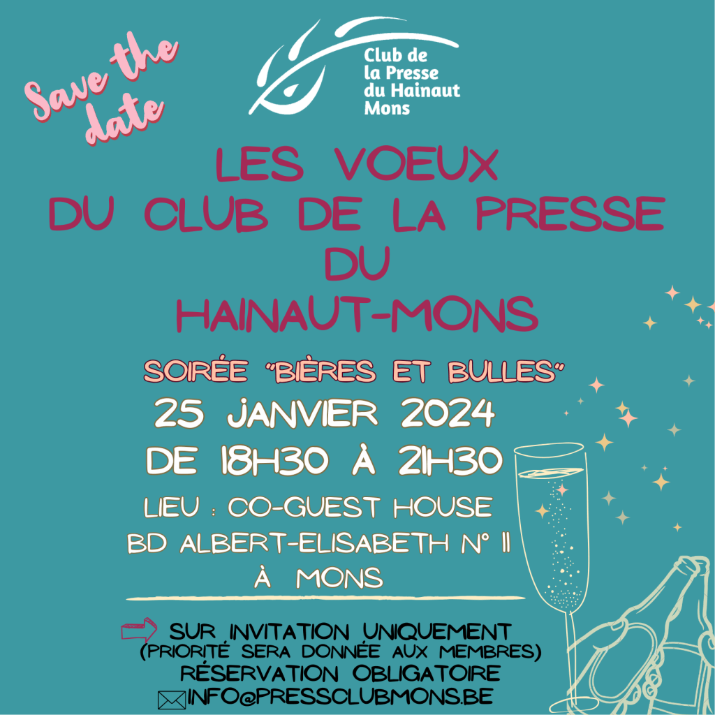 En cette période effervescente où pleuvent les vœux, c’est avec grand plaisir que le Club de la Presse du Hainaut-Mons vous invite à venir célébrer ensemble cette année qui commence,