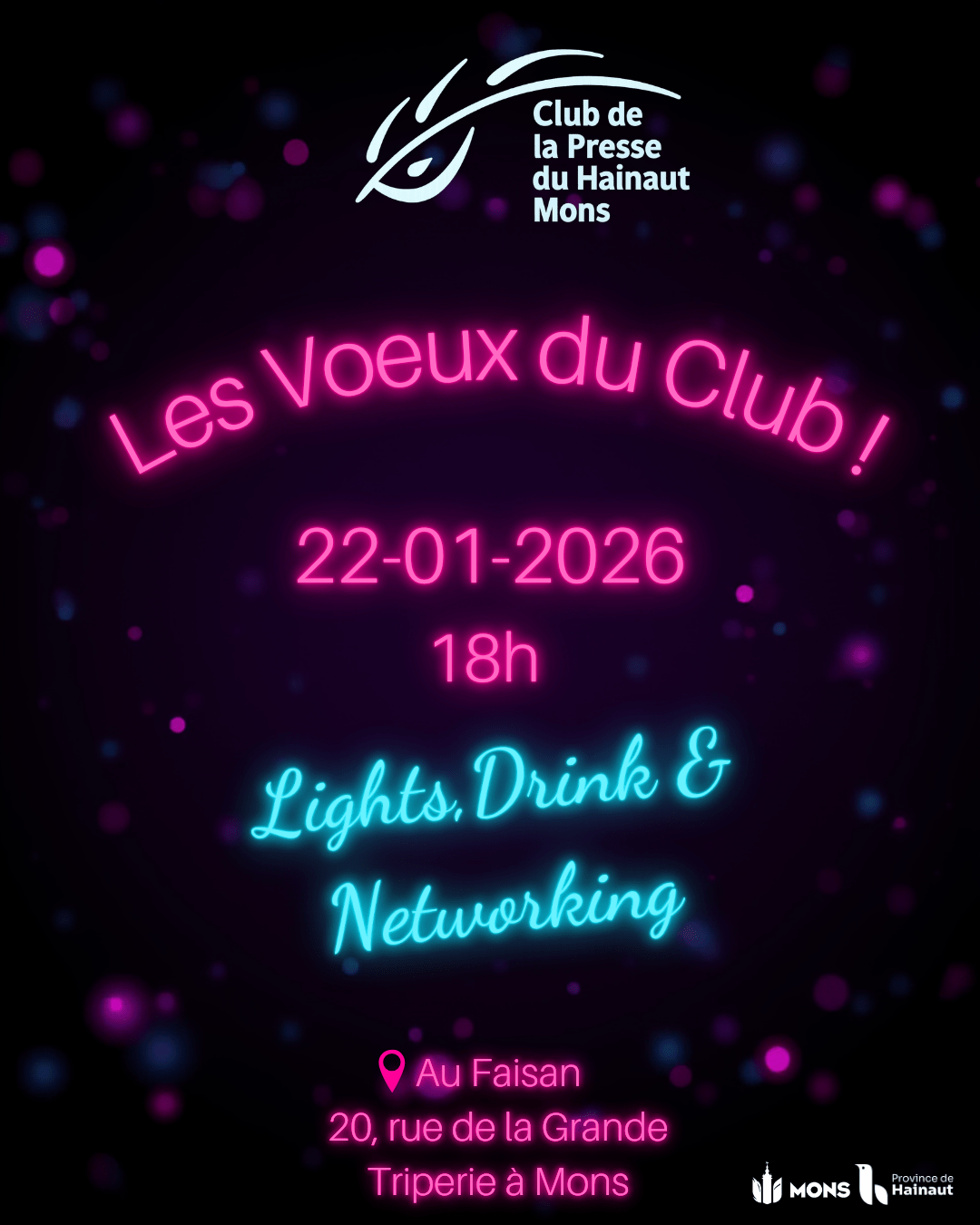 Le jeudi 22 janvier 2026, de 18h à 20h, au Faisan (20, rue de la Grande Triperie), le Club a le plaisir de vous inviter à ses Vœux 2026, un rendez-vous festif et convivial, pensé comme un vrai moment de networking, de partage et de culture locale, au cœur de Mons.